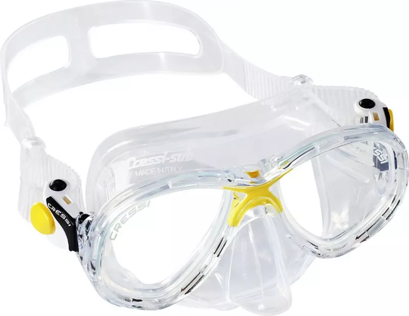 Stylische Kindertaucherbrille mit auffälligem farbigen Silikon. Speziell für die kleinen Gesichter der Kinder haben wir die Kindertaucherbrille Cressi Marea Junior im Sortiment. Geeignet für Kinder von 7-13 Jahren zum Schutz der Augen im Pool oder für die Unterwasserwelt.