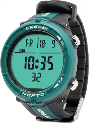 Der Nepto wurde speziell für das Freitauchen entwickelt und reiht sich nahtlos in die Reihe von Premium-Tauchcomputern, entwickelt und hergestellt von Cressi-Elettronica in Italien, ein.Der neu entwickelte, innovative Algorithmus bietet mit seinem Taravana-Modus erhöhten Schutz vor dem Risiko eines Lungenödems.