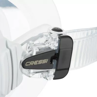 Die Mikroverstellung der Schnalle ist besonders benutzerfreundlich: Sie ist über ein flexibles Verbindungselement mit dem Maskenrahmen verbunden und ermöglicht ein einfaches Anpassen des Maskenbands, ohne dass sich der Maskenkörper verformt – ein häufiger Grund für das Eindringen von Wasser.
