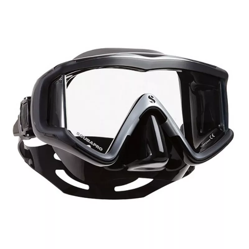 Das große Einglas-Design und die Seitenfenster ergeben eine weite Sicht unter Wasser. Die doppelt abgedichtete Silikonlippe bietet eine Dichtung, die sowohl komfortabel als auch wasserdicht ist. Drehbare Schnallen ermöglichen eine perfekte Passform und ein exklusives Lackierverfahren sorgt für ein Tauchen mit Stil.
