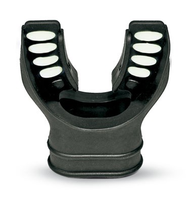 Universelles Ersatzmundstück als Ersatzteil für Schnorchel oder Atemtegler aus klarem Silikon mit grauen Beißnoppen oder schwarzem Silikon mit gelben Beißnoppen. Die seitlichen Beißstücke sind etwas länger als die der normalen Mundstücke und damit angenehmer und entspannter zu halten. Das Mundstück wird mit Spannband geliefert.