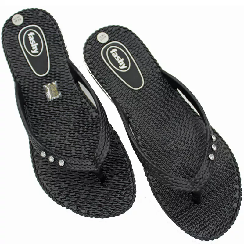 Damen V-Strap supersoft, für einen hohen Tragekomfort elegante Bandage mit Strass. Dieser Badeschuh oder auch FlipFlop ist ein Hingucker in jeden Bad, am Strand als Strandschuh oder im Wellnistempel. Farbe: Schwarz