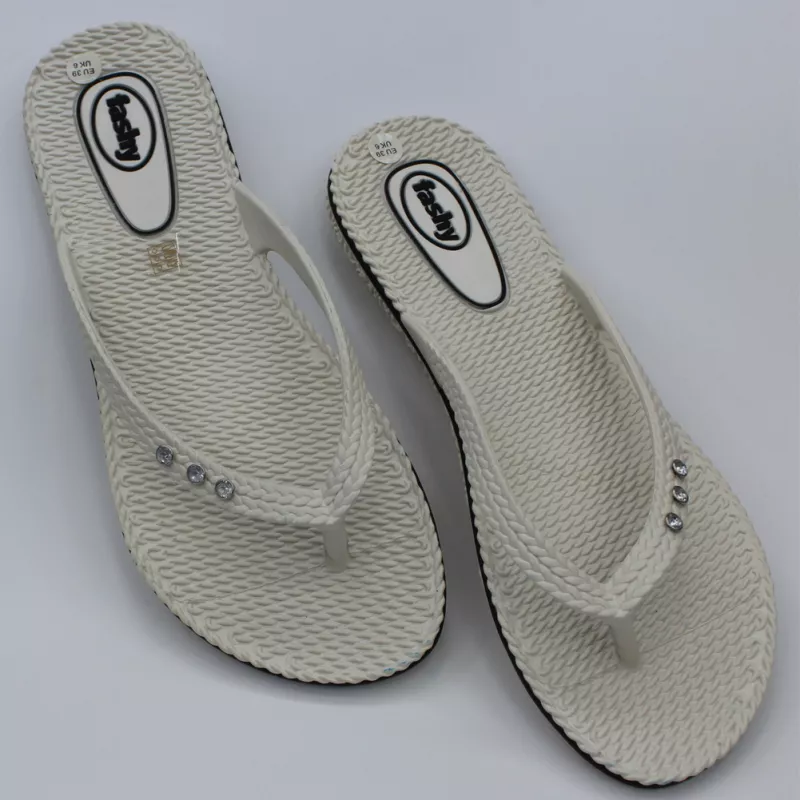 Damen V-Strap supersoft, für einen hohen Tragekomfort elegante Bandage mit Strass. Dieser Badeschuh oder auch FlipFlop ist ein Hingucker in jeden Bad, am Strand als Strandschuh oder im Wellnistempel. Farbe: Weiss