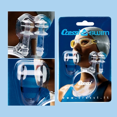 Ohrstöpsel und Nasenklemmen Set für Schwimmer, Wassergymnastik, Syncronschwimmen und weitere Schwimmsportarten. Es verhindert das Eindringen von Wasser in die Nase oder die Gehörgänge.