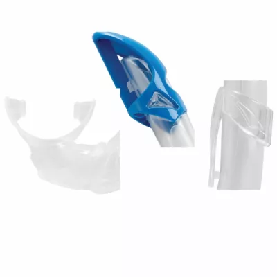 Der Maskenkörper besteht aus weichen, hypoallergenem und transparentem Silikon.