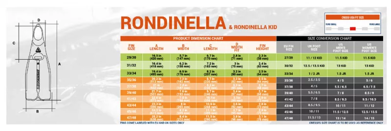 Rondinella ist die ideale Flosse zum Schnorcheln, Schwimmen und für Apnoetauchgänge.