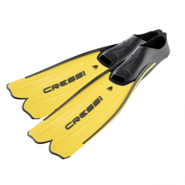In dieser Flosse steckt die gesamte fünfzigjährige Erfahrung von Cressi, eine Weiterentwiclung der Grundprinzipien des berühmten Rondine-Modells aus blauem Gummi.