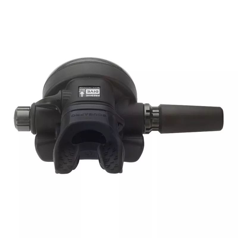 • Über einen Regler für den Einatemwiderstand kann die Luftzufuhr an sich ändernde Tiefen, Wasserbedingungen und persönliche Vorlieben angepasst werden und der Dive-/Pre-Dive Schalter des Venturi-Initiated-Vacuum-Assistenten (VIVA) verhindert das Abströmen in kaltem Wasser oder bei der Nutzung als Oktopus.