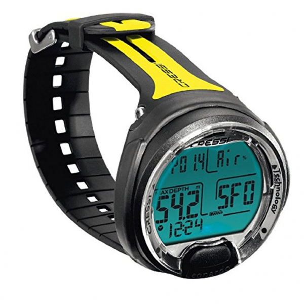 Der Computer Leonardo Cressi ist ein multifunktionales Gerät für Sporttauchgänge, das alle erforderlichen Informationen über Tiefe, Tauchzeiten, eventuelle Dekompressionspflicht, Aufstiegsgeschwindigkeiten und Oberflächenpausen zwischen mehreren Tauchgängen liefert. Eine hochentwickelte Software berechnet kontinuierlich die Stickstoffaufnahme und –abgabe, wobei jeweils der Inertgasanteil der unterschiedlichen Gemische berücksichtigt wird. Diese Informationen werden dank des PCD Systems (Priority Compartment Digit Display) auf einem großflächigen Display angezeigt, das einen einfachen und direkten "Dialog" zwischen Taucher und Computer ermöglicht und das Verständnis aller nützlichen Daten im richtigen Moment sowie eine hervorragende Ablesbarkeit in allen Gebrauchssituationen garantiert. Des Weiteren ist der Computer mit einer Uhr und einem Kalender versehen und verfügt über einen großzügigen Speicher für zurückliegende Tauchgänge (logbook) und mittels Schnittstelle über eine Tauchsimulation. Das Rechenmodell von Leonardo berechnet sowohl für die Luft- als auch für die Nitrox-Tauchgänge die Sättigung und Entsättigung. Im letzten Fall können Sie alle Parameter für das Nitrox-Gemisch für Ihren Tauchgang eingeben: Vom zulässigen PO2 Höchstwert (zwischen 1.2 bar und 1.6 bar) bis zum Sauerstoffgehalt (FO2) zwischen 21% und 50%. Der Benutzer kann ferner das Gerät entweder auf metrische (m-°C) oder auf imperiale Maßeinheiten (ft-°F) einstellen.