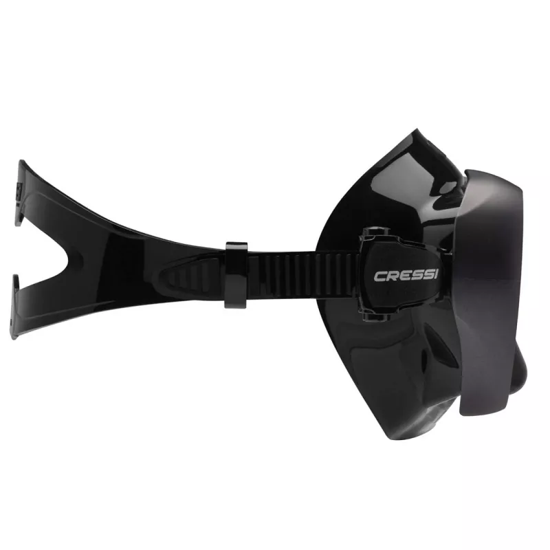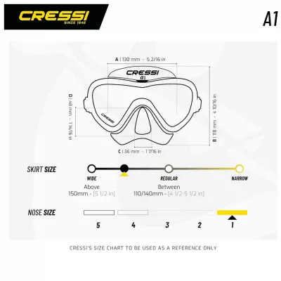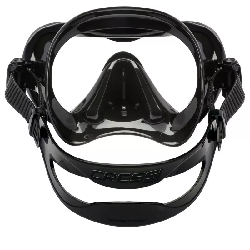 Die Schnallen sind mit einer weichen und elastischen Klappe mit dem Rahmen verbunden, um nicht nur eine flexible Passform zu erzielen, sondern auch den Luftwiderstand und die Bruchgefahr zu verringern. Die Schnallen ermöglichen eine sofortige Einstellung der Riemenlänge mit einer Hand, auch mit Handschuhen. Es verfügt über eine weiche Nasentasche für einen einfachen Ausgleich. Die gelbe Linse erhöht den Kontrast und macht Objekte besser sichtbar. Darüber hinaus erhöht es die Lebendigkeit der Farben unter Wasser.