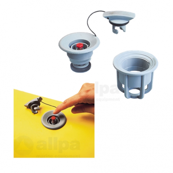 Universalventil mit “Push-push” System: Ventil bleibt im Leer-laufstand offen. Lieferung mit Schlauchnippel. Maße: Außen 51x53 mm(BxH), Innen Breite 38 mm